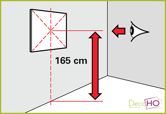 Une excellente solution pour accrocher des cadres lourds est d'utiliser un kit de suspension pour tableaux avec rail d'accrochage et câble de suspension. Commencez par le panneau qui se trouve au milieu de la composition. Pour soutenir des objets un peu plus lourds, optez pour le crochet à visser. On est un peu sur le même principe que sur le clou adhésif. Il faut compter 1.52 m du sol au centre .